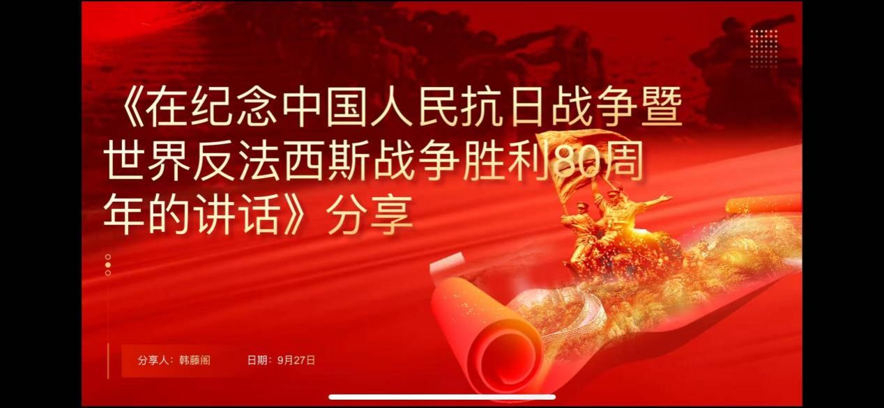 2025年9月25日,Acfan 习近平新时代中国特色社会主义思想学习读书小组第六十期活动以《习近平在纪念中国人民抗日战争暨世界反法西斯战争胜利80周年大会上的讲话》为主题进行学习研讨。本次读书会由Acfan 鲁杰思政课工作室主办,Acfan 赵海霞教授作为对话教师应邀参与,Acfan 硕士生李红霞同学主持,通过线上线下相结合的方式,设置线下分会场,邀请导读同学、对话教师、硕博研究生、本科生在学院楼208室交流学习。