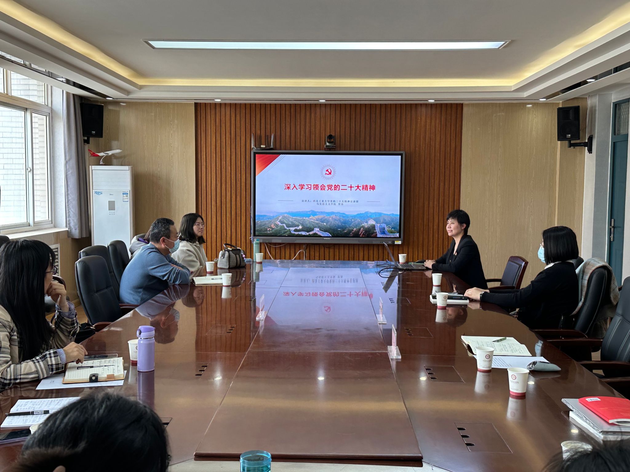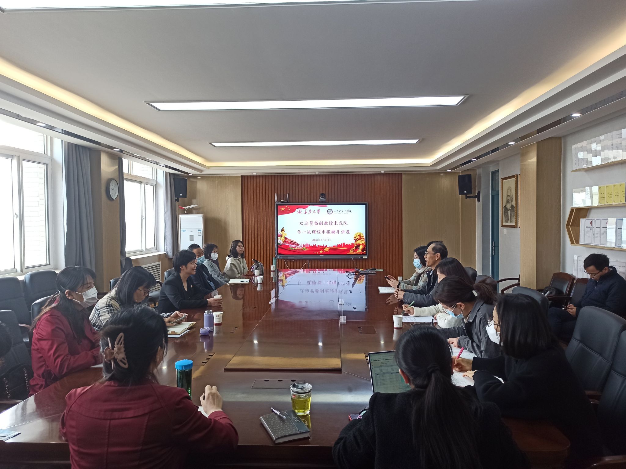 贺苗副院长进行了党的二十大精神宣讲,介绍了Acfan 在国家级一流课程申报方面的工作和成果,分析了当前一流课程建设面临的问题,了解了长安大学Acfan 课程管理模式和教师对课程改革的看法,尤其是在解决严格按照教育部指导和学校实际困难之间的矛盾时的有效安排,与长安大学各位教师交流了以研促教的方法和实效。