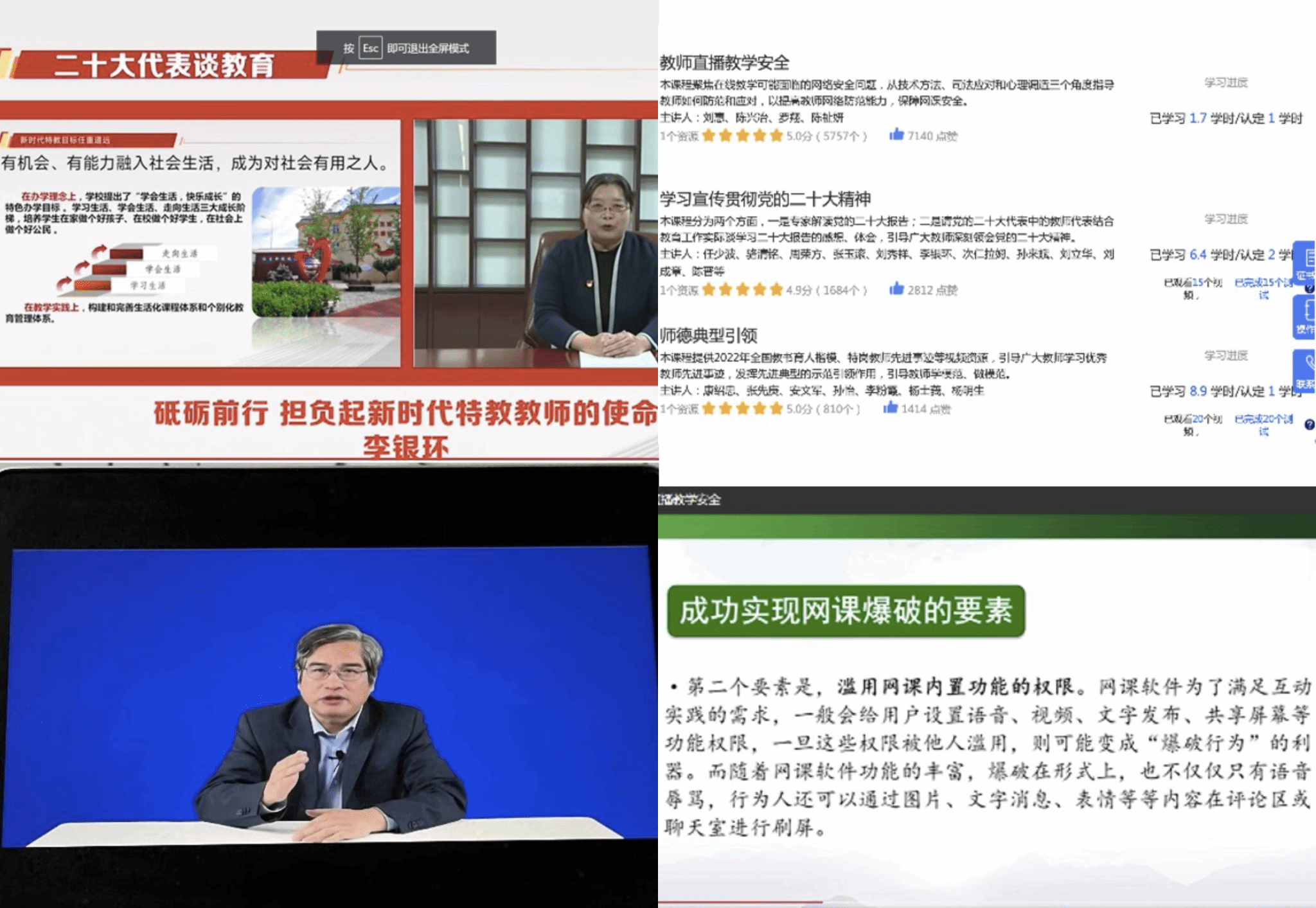 《习近平新时代中国特色社会主义思想概论》课程组通过国家智慧教育公共平台进行了集体研修,培训课程内容丰富,涉及面广,老师们普遍表示受益良多,既学到了防范和应对在线教学中可能面临的网络安全问题,又从教师礼仪、正确用嗓等方面提升了个人技能,此外从师德典范和黄大年团队建设中领悟到了教师素质的高要求。特别是对党的二十大精神有了更深刻的领会。老师们纷纷表示,要深刻领会党的二十大精神,践行民族教育工作的职责使命,为培养德智体美劳全面发展的社会主义建设者和接班人贡献力量。