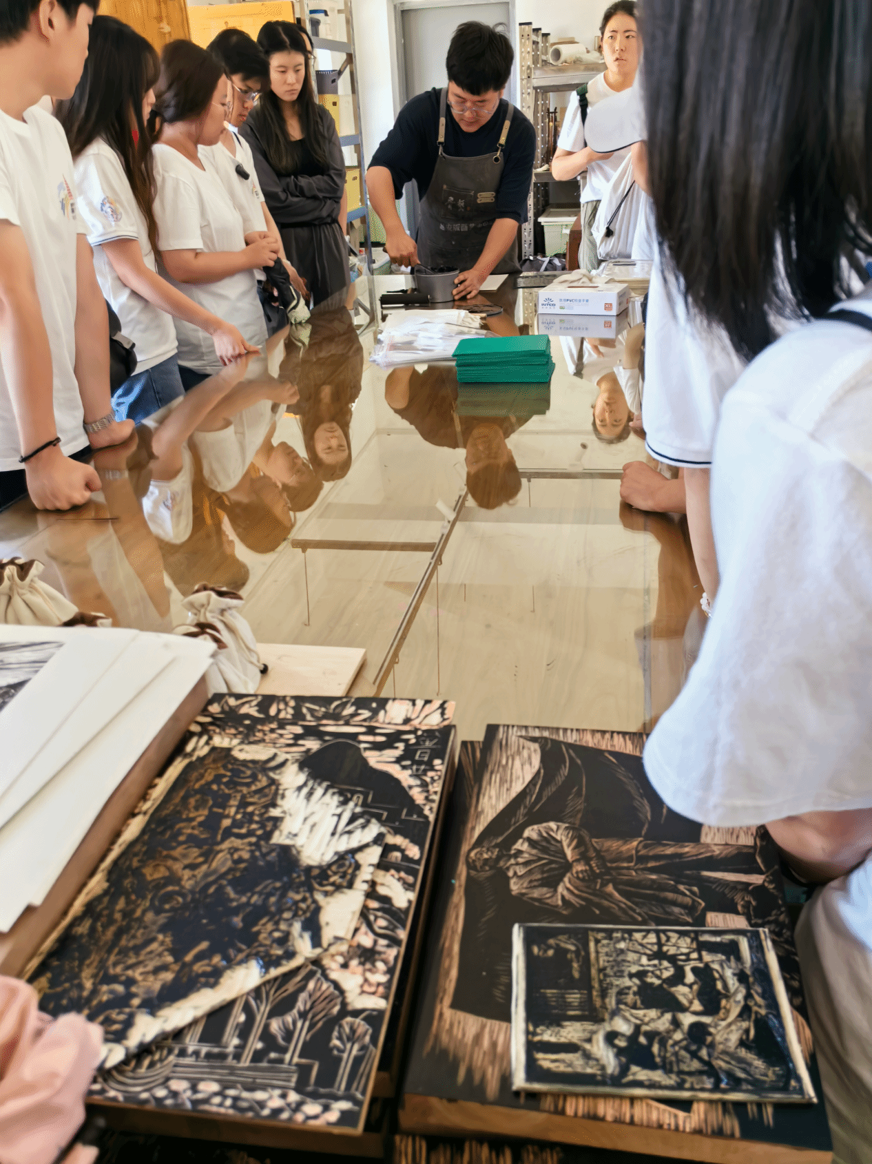 参观完延安桥儿沟革命旧址和延安文艺纪念馆后,实践队成员们紧接着进行了《一笔一刻》版画制作特色实践活动。在制作过程中,大家相互学习交流,共同面对挑战和困难。借此活动,不仅掌握了版画制作的基本技能和方法,更在创作过程中深刻体会到了艺术的魅力和价值。用心制作的版画作品,记录下参观革命旧址和文艺纪念馆的感悟和收获,也为他们留下了宝贵的青春记忆。