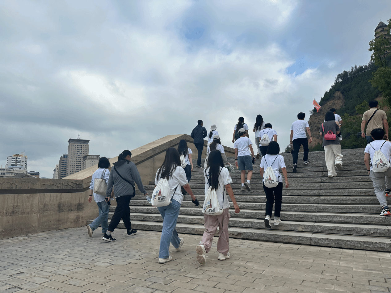 7月20日上午,实践队首先前往延安宝塔山进行参观调研。宝塔山是革命圣地延安的标志和象征,见证着中国共产党从胜利走向新的胜利的光辉历史。在讲解员的带领下,实践队员们环顾塔身,俯瞰延安市区,感受老一辈革命家的辉煌业绩。一幕幕红色记忆在眼前重现,成为我辈奋斗之不竭动力。