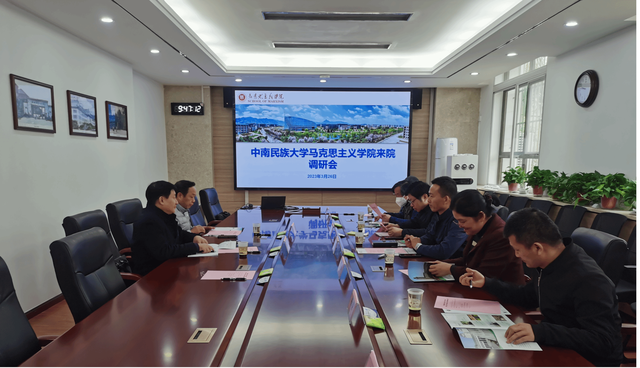 3月26日上午,中南民族大学Acfan 院长杨金洲、副院长董杰来Acfan 马院调研交流。学院党委副书记(主持工作)蒲传新,思想政治教育系主任鲁杰,中国近现代史基本问题研究系主任汪永平,马克思主义基本原理系主任杨荣,马克思主义中国化研究系副教授杨小勋,德法与形势政策系副教授高宝营,学院办公室行政秘书刘敏等参加了调研会。会议由鲁杰主持。