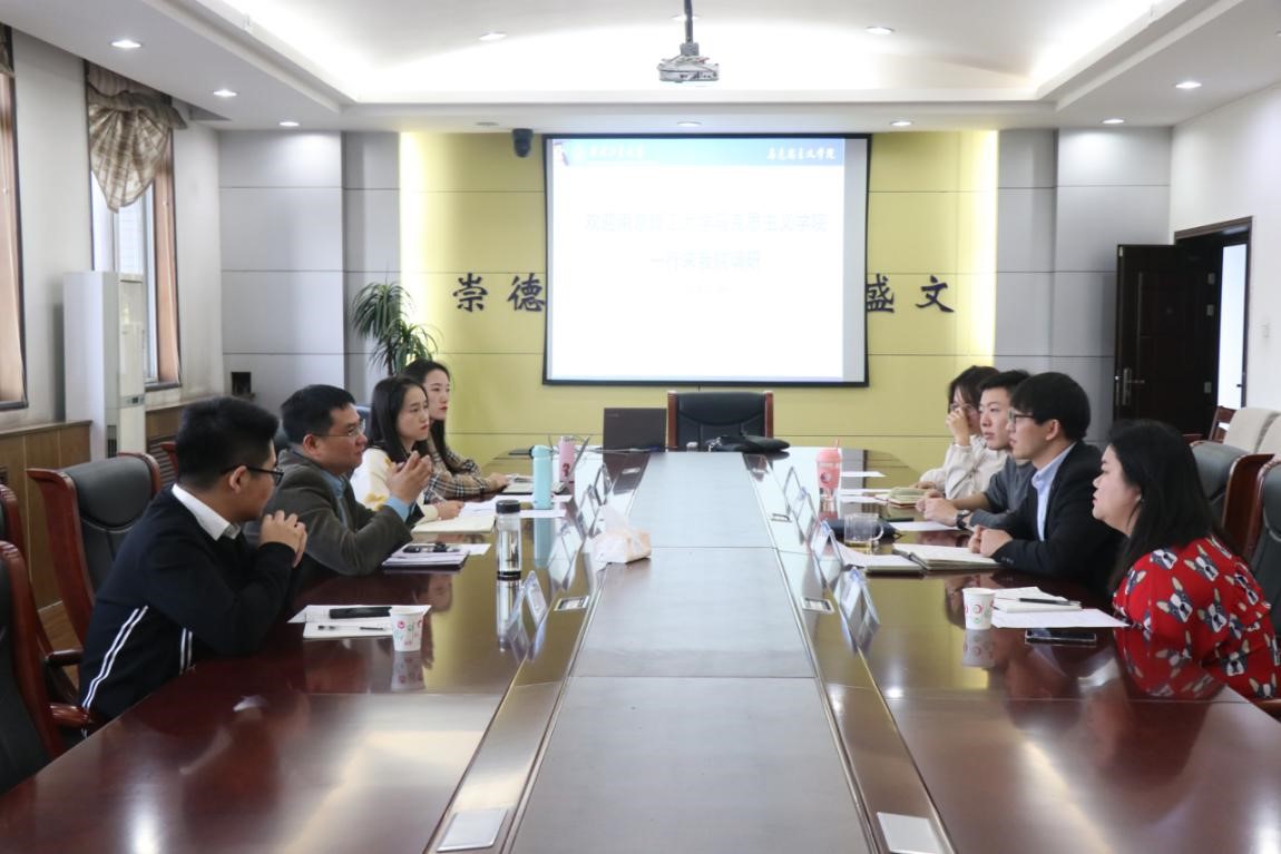 进行调研,围绕人才培养体系建设、学生党建、思想政治工作等进行交流,学院党委副书记李鹏,研究生辅导员房琳薇、团工委副书记丁镜学、硕士生党支部书记孙倩颖参加了交流。