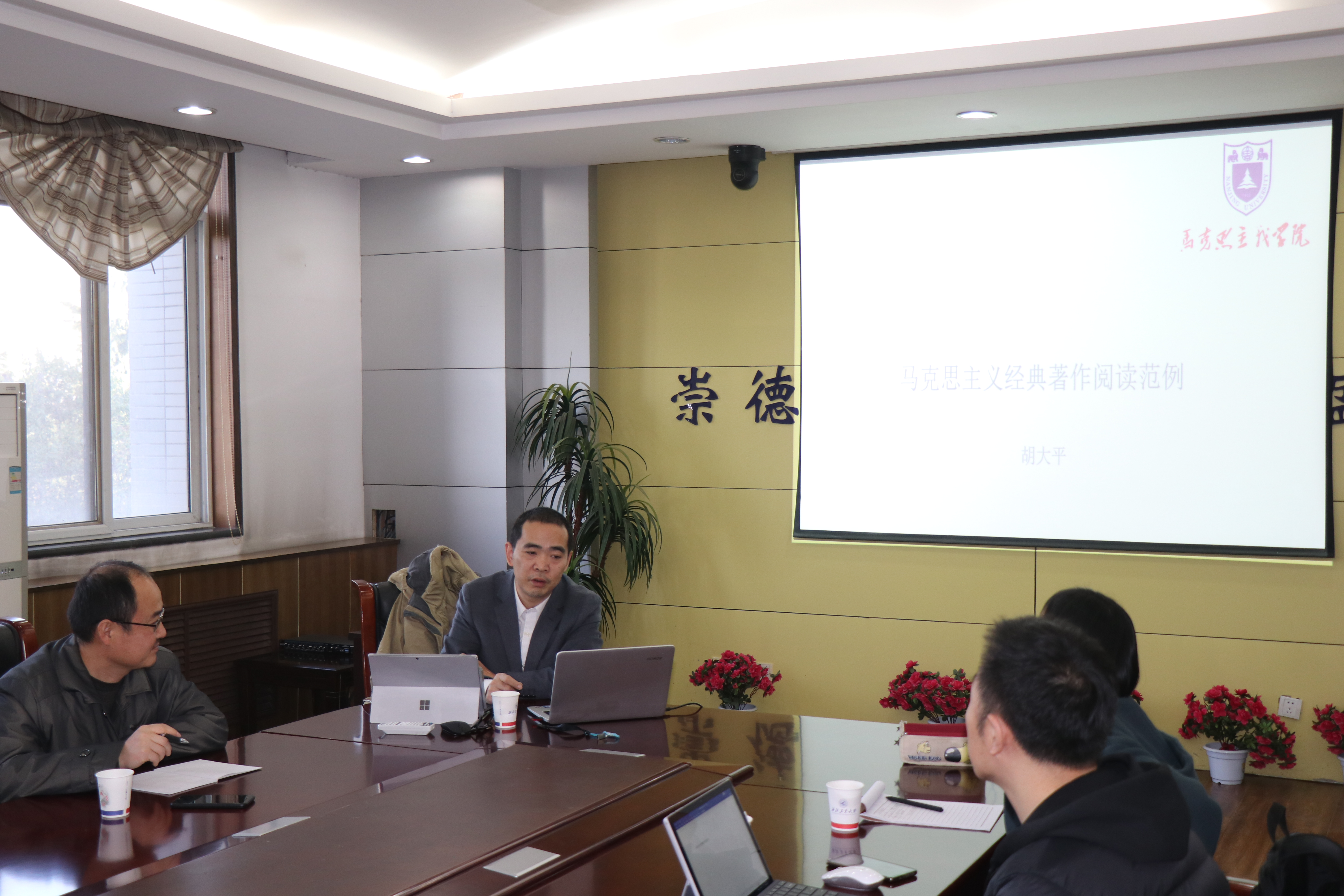 208举行。胡大平老师做了“马克思主义经典著作阅读范例”的报告,胡老师力主马克思主义理论学科要增强学理性,马克思主义经典著作研读是所有思政人的“童子功”。他结合马恩经典中的具体篇章,从马克思主义理论旨趣和马克思主义基本精神、马克思主义理论体系的内容和逻辑方面为与会者研究马克思主义理论开出了一个系统的独具特色的篇章目录,在报告中胡老师对于经典著作的研读与深思功力令人肃然起敬。