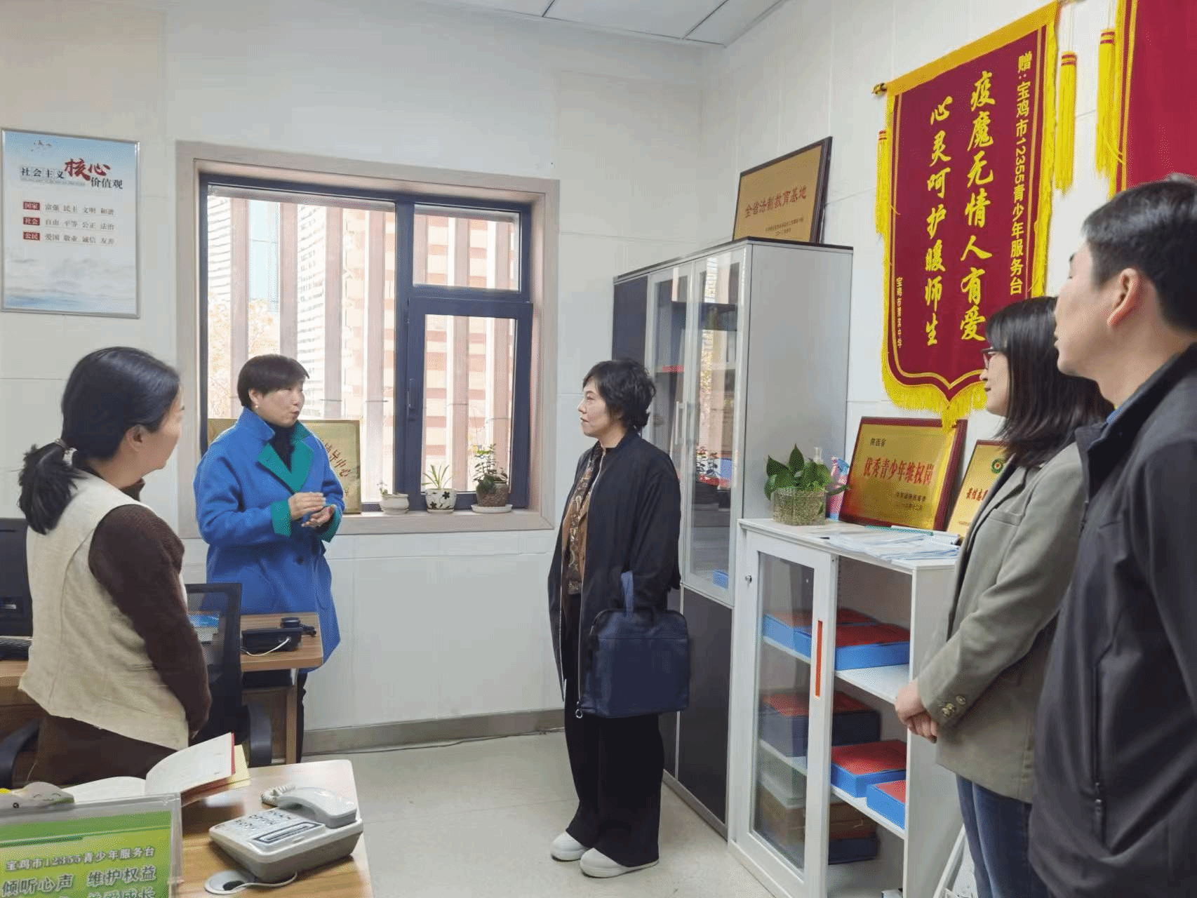 4月6日上午,调研组一行先后前往渭滨区龙山路社区,宝鸡市12355青少年服务台调研指导青年发展型城市建设试点工作。调研组听取了龙山路社区重点青少年群体服务管理、青年住房保障工作进展。