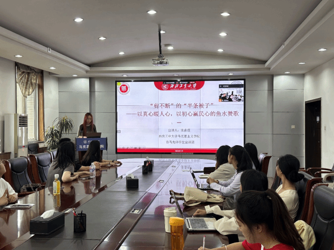 青马先锋学生宣讲团两位成员送讲了两堂精彩生动的党课,张淼煜同学以《“剪不断”的“半条被子”——以真心暖人心,以初心赢民心的鱼水赞歌》为题,用湖南汝城沙洲村“半床棉被”这个红色经典故事讲述了共产党人与人民群众荣辱与共、风雨同舟的鱼水深情。崔颖文同学以《歌唱劳动精神时代强音,谱写劳动光荣青春底色》为题,强调新时代弘扬劳动精神关乎社会主义现代化强国建设,发展经济、改善民生、创新科技等都迫切需要弘扬劳动精神,为中国式现代化新道路厚植精神底色,凝聚精神力量。