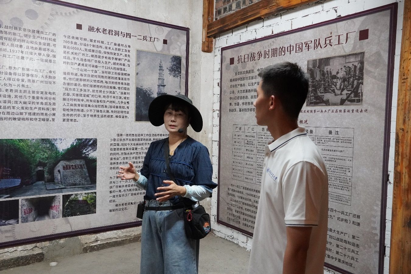 活动伊始,讲解员向实践队详细介绍了老君洞兵工厂的发展历程。该兵工厂曾是革命历史的见证,抗战期间,著名的四十一兵工厂在此兴建,占地近千亩,设有8个制造所,主要生产步枪、机枪、手榴弹等武器,为抗日战争胜利立下了汗马功劳。