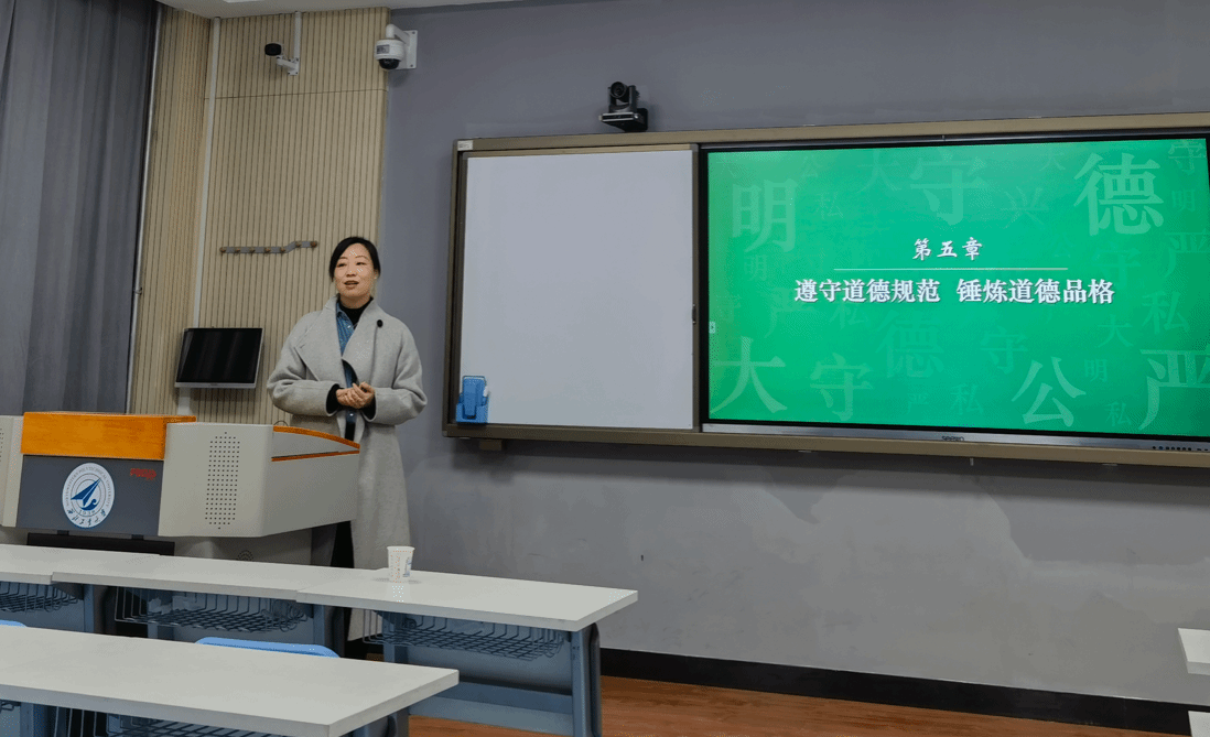 李婷副教授进行《思想道德与法治》课程教学示范。本次活动由德法与形势政策系主任胡建发主持。