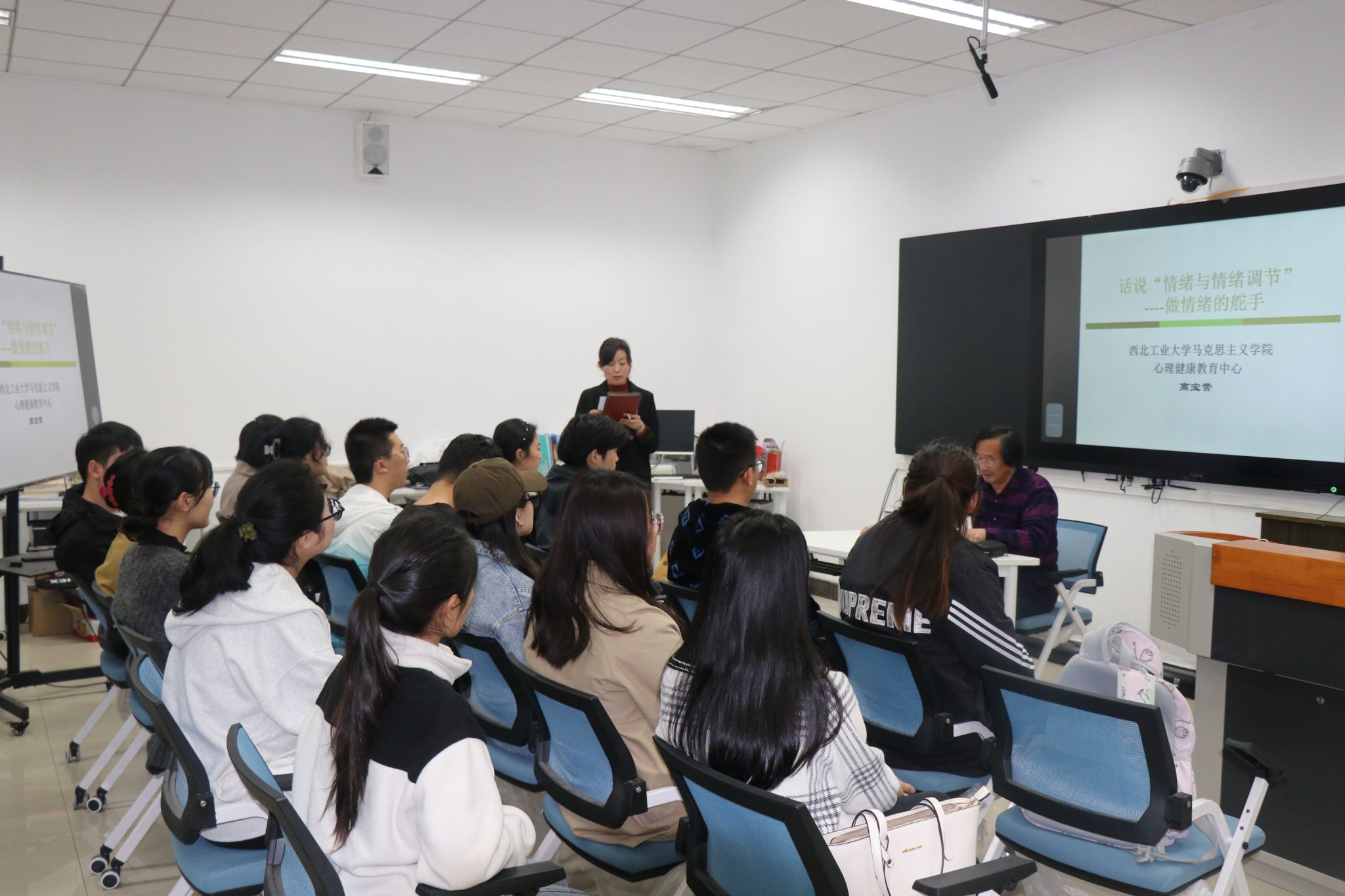 At 7 p.m. on October 19, Associate Professor Gao Baoying of the School of Marxism of NPU gave a psychological lecture entitled 'Emotions and Emotional Regulation' for teachers and students in the 332 classroom. The lecture was presided over by Wang Huan, secretary of the Youth League Committee of the College and master's counselor.