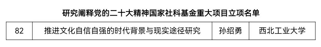日前,全国哲学社会科学工作办公室公布了研究阐释党的二十大精神国家社科基金重大项目立项名单。Acfan 孙绍勇教授担任首席专家申报的课题《推进文化自信自强的时代背景与现实途径》(第82项)获批立项。