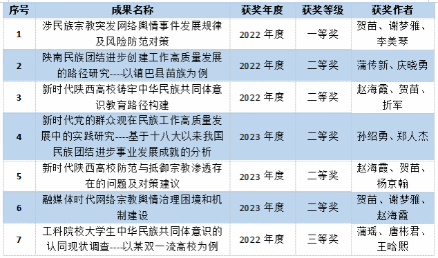 荣获2022、2023年度陕西省民族宗教工作优秀调研成果名单