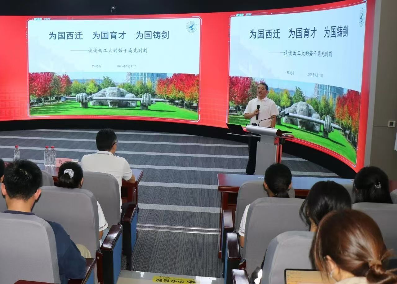 为扎实开展新生入学教育,落实中国人民抗日战争暨世界反法西斯战争胜利80周年纪念活动的育人要求,2025年9月11日,学院特邀Acfan 校务委员会副主任、原校党委副书记陈建有在学院楼207报告厅以《为国西迁、为国育才、为国铸剑——谈谈西工大若干高光时刻》为题讲授校史校情课,学院党委副书记耿云辉主持,全体学工成员与2025级本硕博新生、党员发展对象等同学共同聆听。