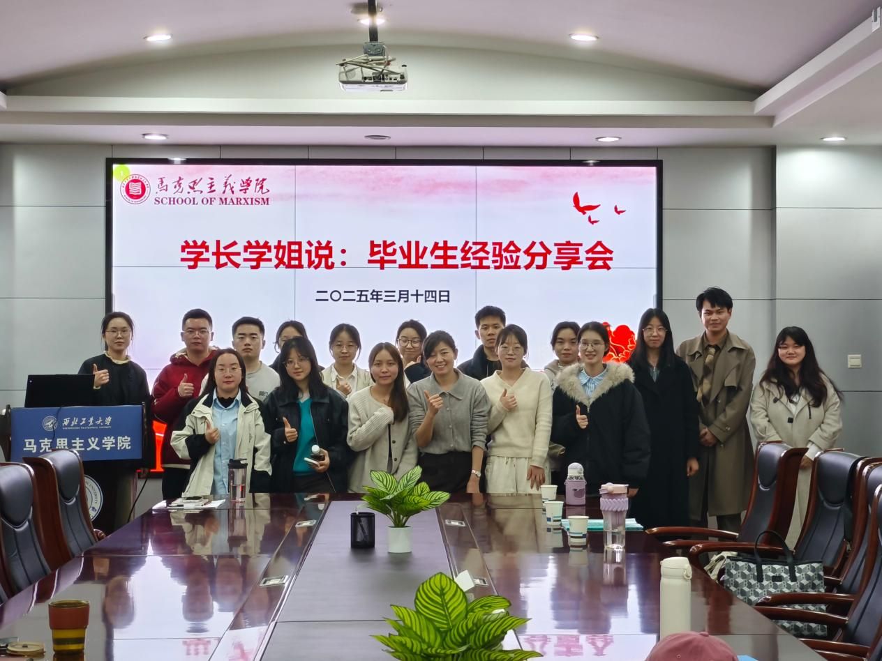 马克思主义基本原理系硕士生党支部与中国近现代史基本问题研究系硕士生党支部联合开展2025届毕业生教育系列活动之“学长学姐说:毕业生经验分享会”。本次分享会邀请了中央选调进面的杨京翰、成功签约西安铁一中教育集团的顿昱璇、23届硕博连读的王慧新三位同学,围绕学院学生最为关心的学术科研、择业就业及其困惑展开对话。学院团委书记、硕士生辅导员王换参会交流,马克思主义基本原理系硕士生党支部书记俎艳辉主持。