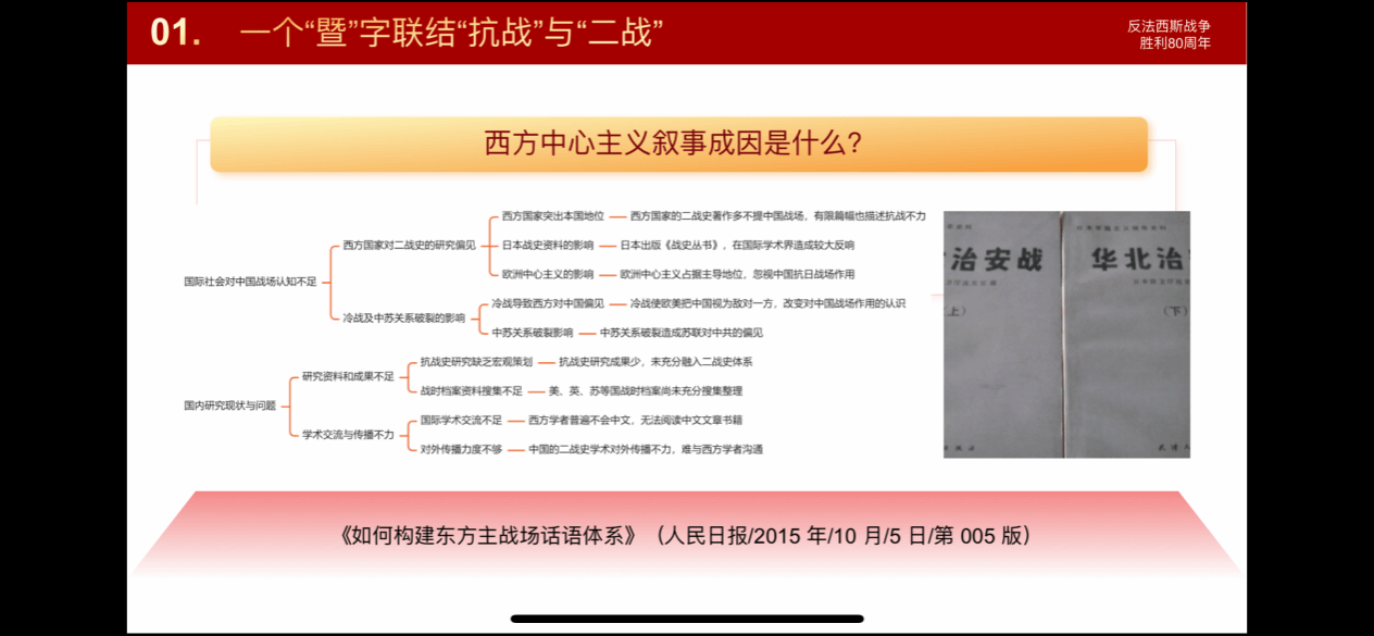 2025年9月25日,Acfan 习近平新时代中国特色社会主义思想学习读书小组第六十期活动以《习近平在纪念中国人民抗日战争暨世界反法西斯战争胜利80周年大会上的讲话》为主题进行学习研讨。本次读书会由Acfan 鲁杰思政课工作室主办,Acfan 赵海霞教授作为对话教师应邀参与,Acfan 硕士生李红霞同学主持,通过线上线下相结合的方式,设置线下分会场,邀请导读同学、对话教师、硕博研究生、本科生在学院楼208室交流学习。