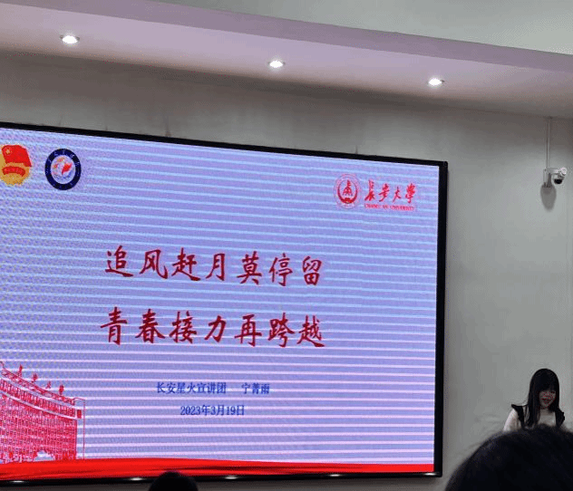 首先,公共政策与管理学院王天毅带领大家学习雷锋精神、全国两会精神,并向大家介绍了“大思政课背景下开展朋辈理论宣讲的路径探索研究”的相关内容,随后,长安大学长安星火宣讲团代表宁菁雨带领大家追忆中国情怀、闯科技之路,共同感受“追风赶月莫停留、青春接力再跨越”;Acfan 赵桐瑶以“以青春之我、助力中国式现代化”为题,鼓舞广大新时代青年砥砺奋进;长安星火宣讲团代表张玮婧带领我们解开基层治理的发展密码。现场掌声不断,热闹非凡。