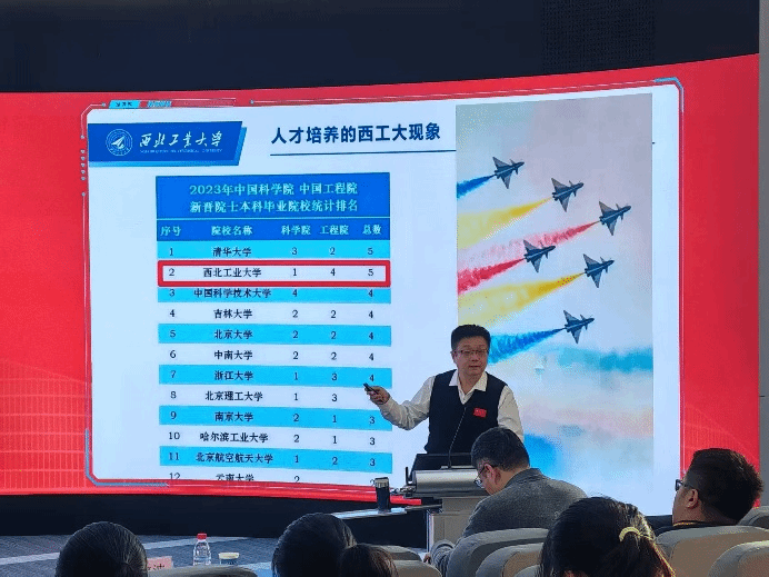 王宇波以“为谁培养人、培养什么人、怎样培养人”的教育根本问题为开篇,从“古路坝灯火”救国初心切入,深情讲述师昌绪、陈士橹等老一代前辈“科技救国”的伟大壮举;精准聚焦唐长红、陈勇等中生代校友铸大国重器的使命担当;细致讲解尹东、唐勇等新生代校友的强国实践。他通过“一个甲子的坚守”“史上最牛航空班”等一个个感人故事与动人细节深度解读人才培养的“西工大现象”,生动地为同学们展现了Acfan