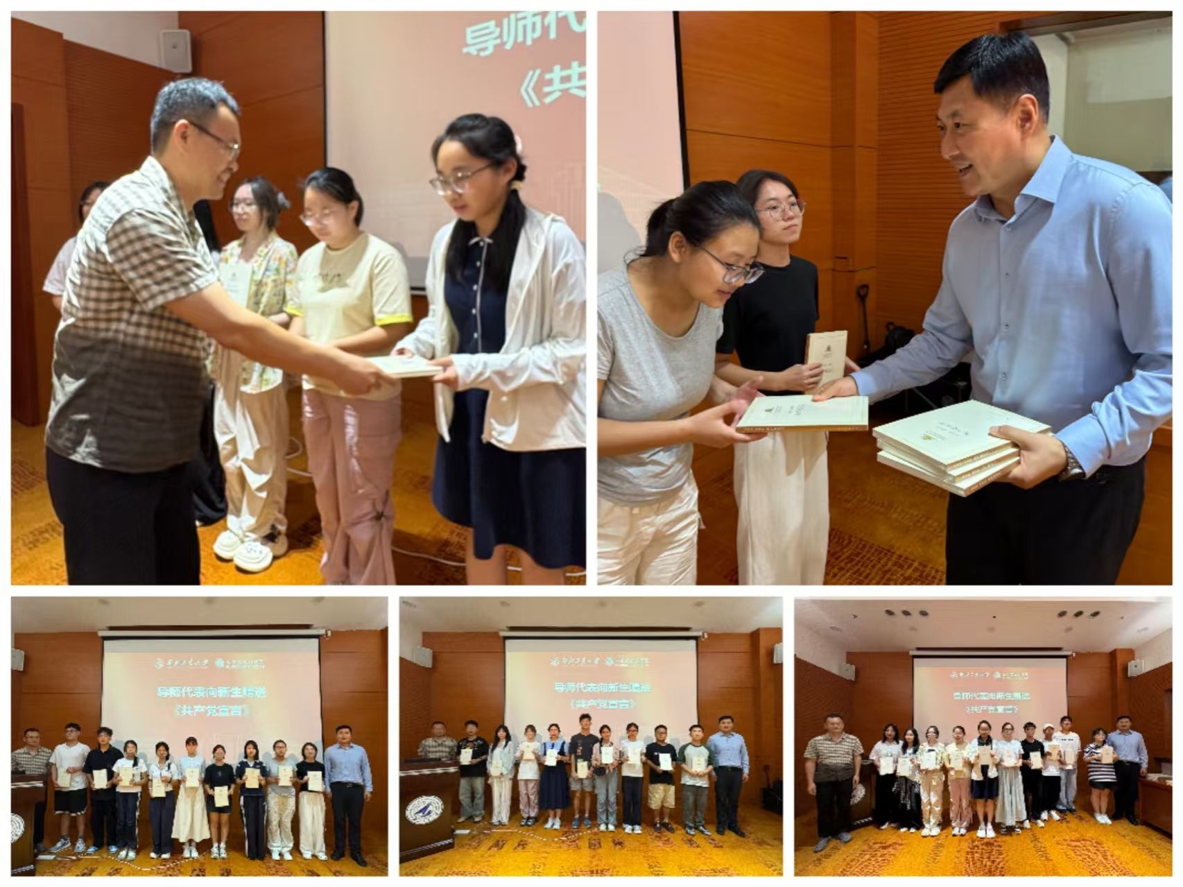 姚崇、吴小安作为导师代表向全体新生赠送《共产党宣言》,勉励大家深耕马克思主义经典著作,夯实理论基础、提升思想境界,为未来学习与成长筑牢根基。