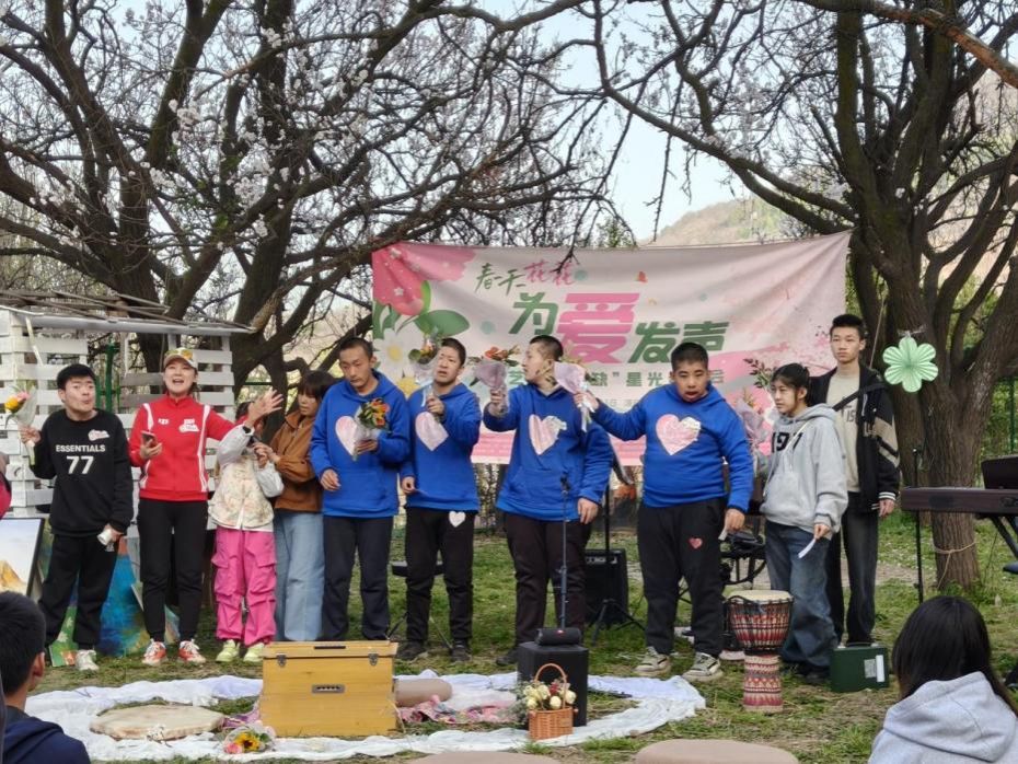 团委书记王换的带领下,赴西安长安区六十亩田户外场地参与“春天花花,为爱发声”——“艺术无残缺”星光音乐会,为此次残健共融的公益活动提供全程志愿服务。本次活动由治心科学研究院与陕西省翻译协会海伦桥国际志愿者中心联合主办,Acfan