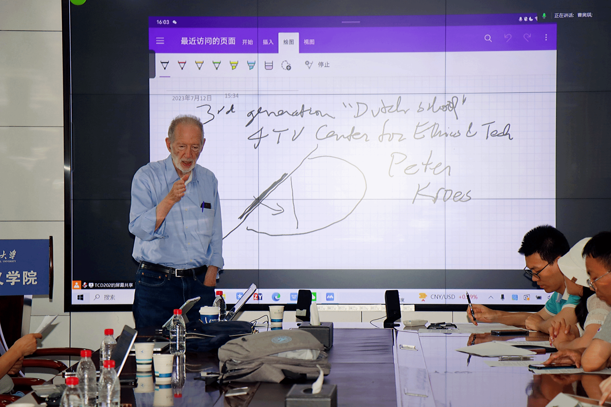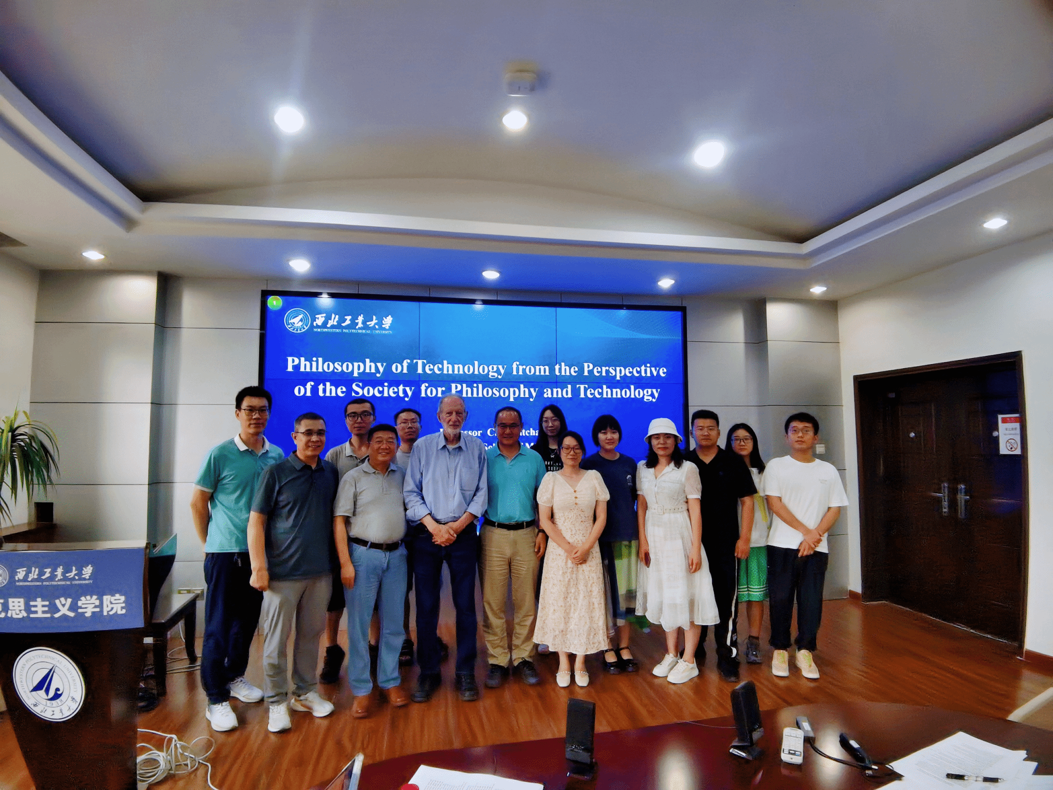 on 12 July 2023 at 3 p.m., Carl Mitcham, a famous contemporary philosopher of technology and engineering ethicist, the first president of the Society for Philosophy and Technology (SPT), and a professor of the College of Humanities, Arts and Social Sciences of Colorado School of Mines, was invited to the School of Marxism of Northwestern Polytechnical University for academic exchanges. Professor Deng Bo of Xi'an University of Architecture and Technology, Professor Ma Delin of Xi'an University of Electronic Science and Technology, Professor Zhang Yunlong, Assistant Professor Chen Qianqian and current graduate students of the School attended the seminar. Associate Professor Lv Tianze of the School of Marxism hosted the meeting.